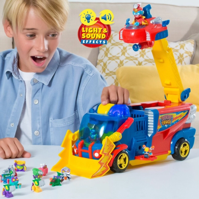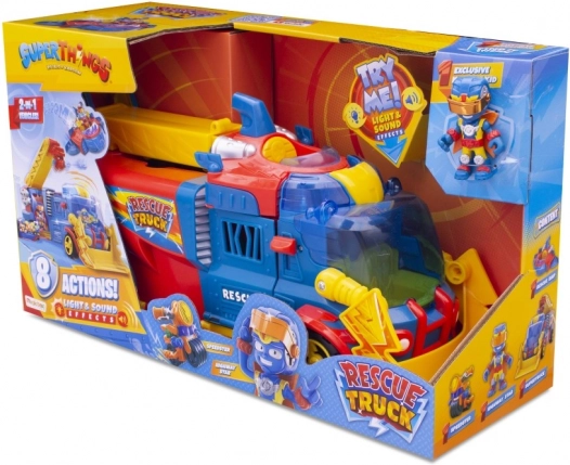 A SuperThings mentőkamion tökéletes kialakítású a kis hősök számára, akik szeretik a kalandokat és a kreatív játékokat. A mozgatható részek és színes elemek könnyen bevonják a gyerekeket a játékba.