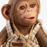 A 32 cm-es, teljes vinil testű, aranyos és élethűen kidolgozott kismajom baba a kicsi és nagy állatkedvelőknek egyaránt örömet okoz. Realista részleteket kínál, pozírozható, és az alkalmazott anyagnak köszönhetően fürdethető is (a szempillákra ügyelve). Kézzel készül Spanyolországban, ajándékdobozban szállítva.