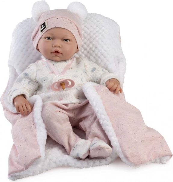 Fedezze fel a játék varázsát a Guca márkájú realista baba újszülöttel. Ez a baba puha textil testtel rendelkezik, ami kellemes tapintásúvá és ideálissá teszi az ölelkezéshez. A kezek és lábak ízületekhez kapcsolódnak, ami lehetővé teszi a baba könnyű pozicionálását, sőt még ültetését is.