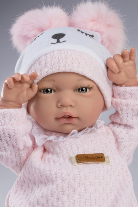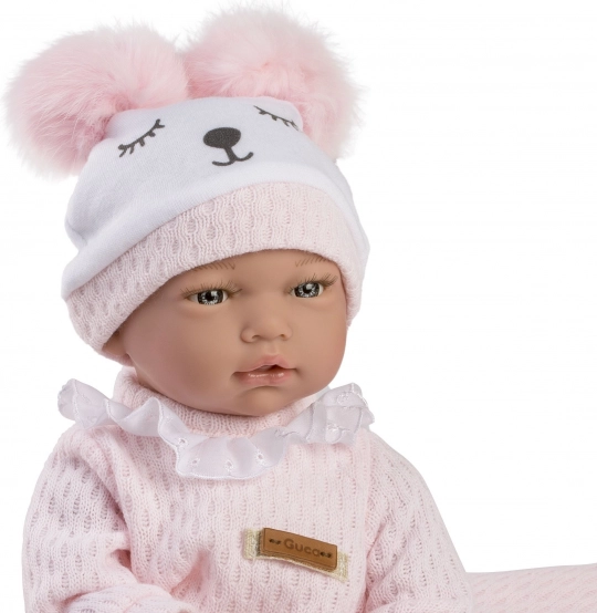 A Guca Andrea baba olyan, mint egy igazi kisbaba – puha textil teste van, kellemes fogású, és a mellkas megnyomására valósághű, nevető gyermekhangot ad ki. A karok és lábak ízülettel rögzítettek, így a baba pozícionálható, és önállóan ülni is tud. Tartozék egy cumi dekoratív kiegészítőként, mindez stílusos ajándékdobozba csomagolva.