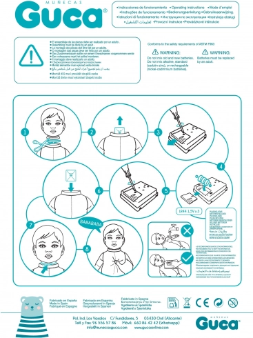 A baba kézzel készül Spanyolországban, nagy hangsúlyt fektetve a minőségre és a részletekre, ezért remek ajándék kis gondoskodóknak és gyűjtőknek egyaránt. A csomagban 3× LR44 gombelem is található cserére vonatkozó útmutatóval, hogy a játék azonnal elkezdődhessen.