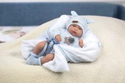Az aranyos Hugo baba ideális azoknak a gyerekeknek, akik szeretnének játszani és gondoskodni a saját „babájukról”. A baba a mellkas megnyomásakor valósághű gyermeknevető hangot ad ki. Ízületek vannak benne, amelyek lehetővé teszik a karok és lábak mozgását, és a beállíthatóságának köszönhetően ülni is tud.