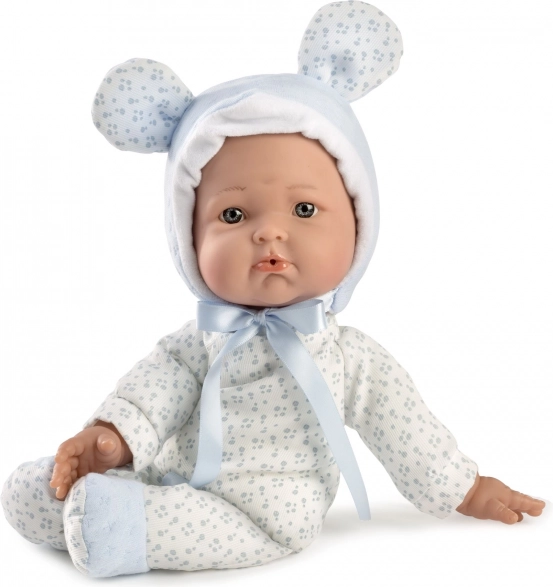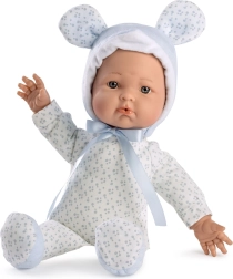 A lágyított vinyl és a textil ruházat kombinációja biztosítja, hogy a baba tartós, de egyben kellemes tapintású is.
