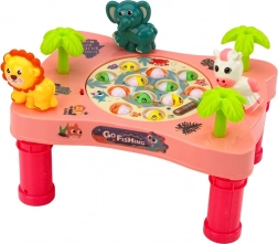 A „Go Fishing” témájú rózsaszín játékasztalka kis akváriummá varázsolja a gyerekszobát. A forgó tányér nyíló-csukódó halacskaszájakkal dinamikus kihívást teremt, amely pontos célzásra és gyors reakcióra ösztönzi a gyerekeket. A vidám állatfiguráknak, a színes megjelenésnek és a dallamoknak köszönhetően a kicsik és nagyok egyaránt megszeretik a játékot.