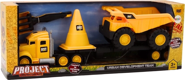 Ez a valósághű építőkészlet minden olyan gyermeket megörvendeztet, aki imádja az építkezések világát. A sárga nyergesvontató pótkocsival kényelmesen elszállítja a billencset, a nagy közlekedési bója kijelöli az építési területet, a lapát és a gereblye pedig hosszú órákra biztosítja a szórakozást a homokban és a kertben. A játékok minőségi, tartós műanyagból készültek, amely könnyen tisztítható.