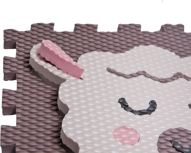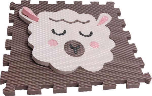 A bárány motívumos, sötétbarna habpuzzle ideális gyerekszobába, játszósarokba és nappaliba. A texturált felület biztos lépést nyújt, tompítja az ütéseket és véd a padló hidegétől. Az reteszes illesztéssel ellátott elemek pontosan összezárnak, így gyorsan összeállítható egy nagyobb játszófelület.