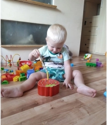 Vidám színek és az eper formája természetes módon motivál a játékra és támogatja az érzékelést.