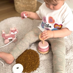 A természetes, sima élű fa kivitel nyugtató rózsás árnyalatokkal kellemes fogású, és nap mint nap játékra csábít.