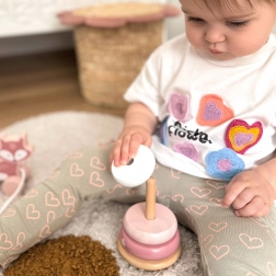 A sima fa felületnek és a kellemes pasztell tónusoknak köszönhetően a játék bármely gyerekszobába illik. A kicsik fejlesztik finom- és nagymozgásaikat, a türelmet és a logikus gondolkodást, miközben biztonságosan és kreatívan játszanak.