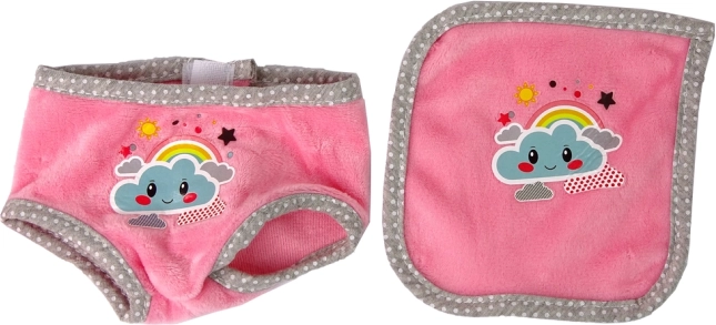 Érintse meg a fantázia és a gondoskodás világát ezzel az aranyos babával, aki rózsaszín-fehér pizsamát visel mosolygós felhővel. A fején illő sapka található, és a csomag része a cumi, üveg, előke és pelenka is, ami valósághűbb játékot tesz lehetővé.