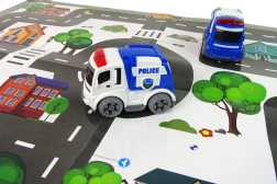 Közlekedési témájú játékkészlet ideális azoknak a gyerekeknek, akik az alapvető közlekedési szabályokat tanulják. Tartalmaz rendőrautót és mentőautót, amelyek könnyen megfoghatók a gyerekek apró kezeivel.