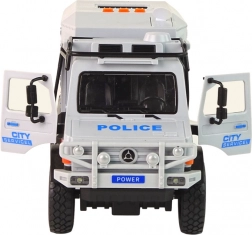 A nyitható első ajtók révén a gyerekek felfedezhetik a jármű belsejét és saját forgatókönyveket alkothatnak. A hang- és fényhatások fokozzák az izgalmat! Az autó elején található LED-lámpák világítanak, ha megnyomja a tető három gombjának egyikét, a riasztóhangok pedig valósághű hangulatot kölcsönöznek.