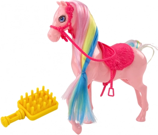 Élvezze az órákig tartó szórakozást ezzel a gyönyörű lófigurával, amely színes sörénnyel és rózsaszín nyereggel rendelkezik! Tökéletes hős, akár otthon, akár a szabadban gyermekének.