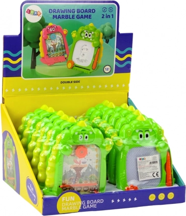 Ez az okos 2 az 1-ben játék dupla szórakozást nyújt a gyerekeknek: az egyik oldalon mágikus rajztábla, amely a csúszkával zökkenőmentesen letörölhető, a másik oldalon flipper a reflexek és a pontosság fejlesztésére. A zöld dinoszaurusz első pillantásra megragadja a figyelmet, és a mellékelt stylusnak köszönhetően a kis művészek újra és újra alkothatnak – rendetlenség és papír nélkül.