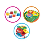Színes, mozdony alakú formabedobó a legkisebbek számára. Ezzel a játékkal a kicsi garantáltan rengeteg szórakozást élvez! Az egyes formákat a megfelelő nyílásokba lehet bedobni. A formabedobó fejleszti a gyermek motorikus, vizuális és hallási képességeit.