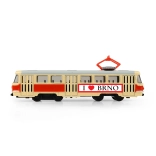 Ez a részletgazdag, vörös-bézs színű fém retro villamos tökéletes BRNÓ-i szuvenír és egyedi ajándék gyűjtőknek. 1:87 méretarányban hűen idézi a városi elektromos villamost, a feltűnő I ♥ BRNO felirattal és működő visszahúzós meghajtással a játékos gurításhoz.