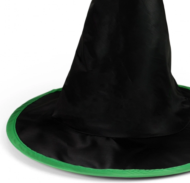 Tökéletesen kiegészíti a halloween jelmezt minden kis varázslónak. Minőségi fekete esőkabát anyagból készült, a kalapot feltűnő zöld szegély díszíti, amely vonzza a figyelmet.