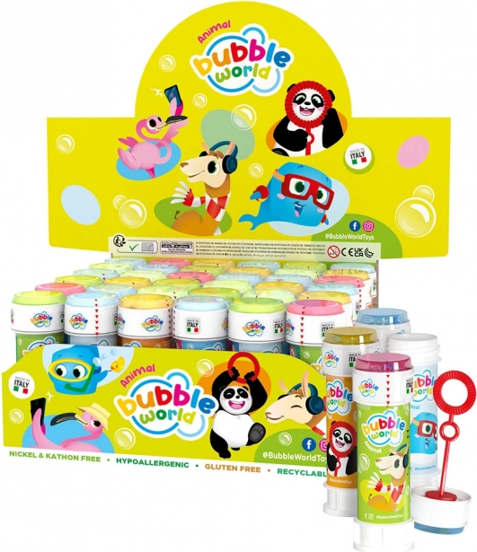 Vidám buborékfújó állatos mintákkal 60 ml tartalommal garantálja az órákig tartó szórakozást.