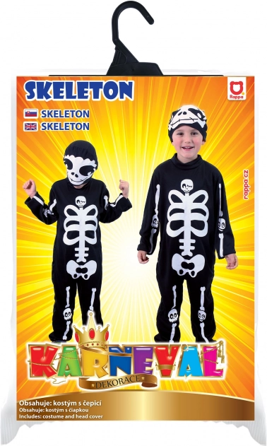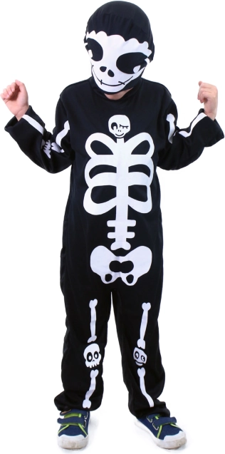Ez a stílusos csontváz jelmez pillanatok alatt a farsang, a Halloween vagy bármely tematikus buli sztárjává varázsolja gyermeked. A kényelmes fekete overál feltűnő fehér csontmintával és a maszk autentikus, ugyanakkor játékosan rémisztő megjelenést kölcsönöz.