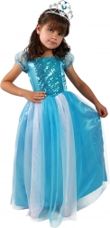 Elegáns kék színű, fehér tüllel díszített lány hercegnő jelmez, amely első pillantásra rabul ejt. A felső részt kék flitterek díszítik, melyek minden mozdulatnál gyönyörűen csillognak, míg a könnyű tutu szoknya mesés volument kölcsönöz a ruhának. Ideális farsangra, jelmezbálra, születésnapi ünnepségekre és a mindennapi jelmezes játékokra.