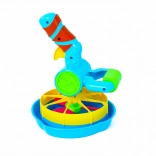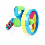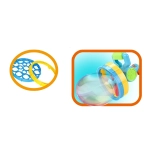 A nagy buborékpisztoly bubifújóval ideális kültéri és beltéri játékokhoz. Ezzel a játékkal könnyen készíthetőek különböző méretű buborékok a két cserélhető fúvókának köszönhetően. A pisztoly könnyen kezelhető és színesen vonzó, ami felkelti a gyerekek figyelmét. Remek választás a motorikus készségek fejlesztésére és az aktív játék támogatására.
