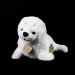 Aranyos plüss fóka, amely 25 cm nagyságú, egy exkluzív plüss játék kollekció része, kiváló minőségű plüssből készült környezetbarát töltettel, újrahasznosított PET palackokból.