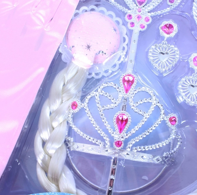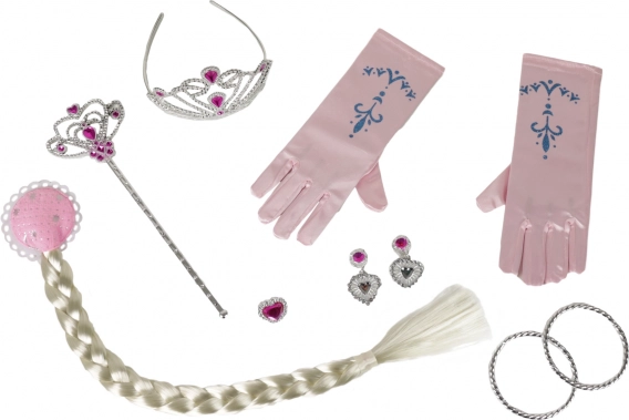 - Korona, fülbevalók, gyűrűk, varázspálca, karkötők, kesztyűk, hosszú szőke copf
