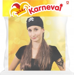 A paróka kényelmes viselésre és könnyű karbantartásra készült. A kendő stabilan tart a fejen, a paróka természetesen fed, és bármely kalóz jelmezt kiegészít. Univerzális mérete a legtöbb tinédzsernek és felnőttnek megfelel.