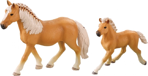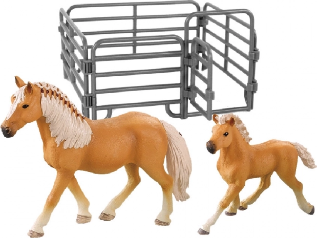 Ez a két lófigurából álló készlet – egy lóval és egy csikóval – minden fiatal lórajongó számára ideális. Minden figura részletgazdagon kidolgozott, barna színnel és világos sörénnyel, ami növeli a hitelességet és a realizmust. A csomag része egy karám is, amely lehetővé teszi a gyerekeknek, hogy saját farmjeleneteiket alkossák meg.