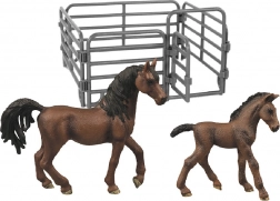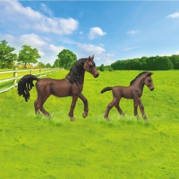 Mérüljön el a gyönyörű lovak világában ezzel a részletesen kidolgozott barna lovak gyűjteményével. A készlet két valósághű lófigurát és egy testreszabható műanyag karámot tartalmaz, amelyek új szintre emelik a farmjátékon belüli élményeket.