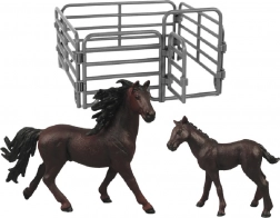 Bővítse játékgyűjteményét ezzel a gyönyörű lovas készlettel karámmal. A ló és a csikó figurája valósághű és kidolgozottságával minden korosztályt elvarázsol. A csomag tartalma: