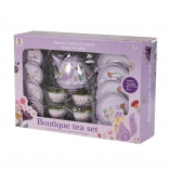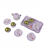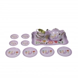 Mindent tartalmaz, amire a gyerekeknek szükségük van a teapartijukhoz - kannát, tányérokat, csészéket és tálcát.