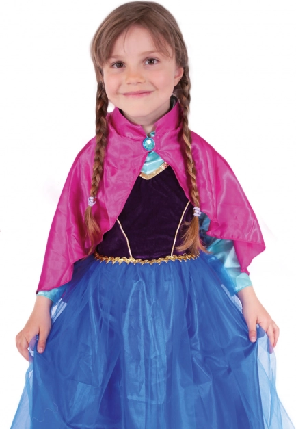 Ez a stílusos jelmez bátor téli hercegnővé varázsol minden kislányt. A gazdag fekete–kék színek arany részletekkel és a díszcsattal ellátott rózsaszín szatén köpeny látványos megjelenést kölcsönöz farsangra, születésnapra vagy otthoni beöltözéshez.