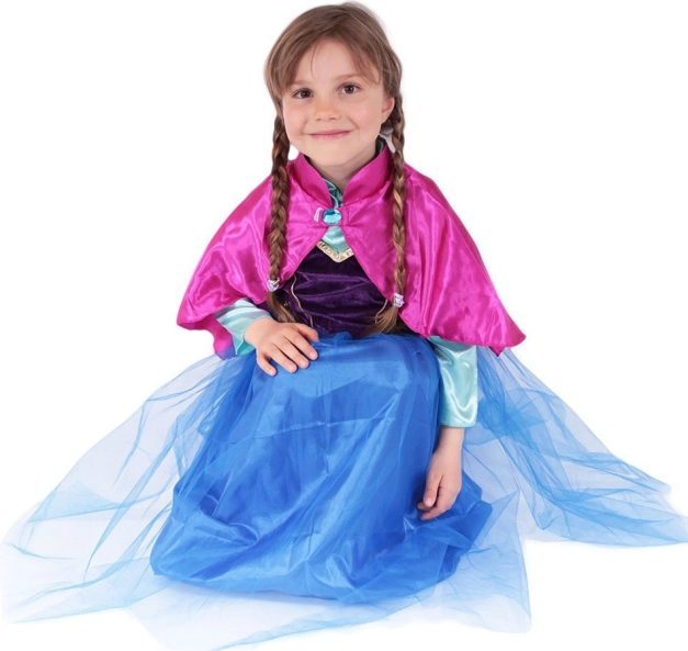 Gyönyörű kislány jelmez a téli hercegnők számára, egy közkedvelt hősnő által inspirálva. M méretben 6–8 éveseknek (117–128 cm) elegáns fekete–kék kivitelben, arany szegéllyel és rózsaszín szatén köpeny kék „kristállyal”. A praktikus EKO csomagolás hely- és környezetkímélő.