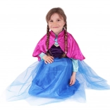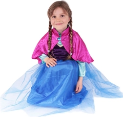 Gyönyörű gyermek jelmez a téli királyság kis rajongóinak. Az S méret 4–6 éves (105–116 cm) gyerekeknek megfelelő. A fekete–kék árnyalatú, arany szegélyű ruha kiegészítője a rózsaszín szatén köpeny kék „kristállyal” – tökéletes farsangra, jelmezbálra és otthoni szerepjátékra. A csomag része a praktikus EKO csomagolás kisebb anyagfelhasználással.