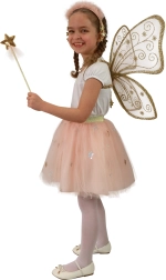 A jelmez tartalmaz arannyal díszített szárnyakat és csillagos szoknyát, amelyek minden kislánynak varázslatos megjelenést kölcsönöznek.