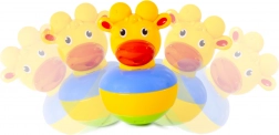 A lekerekített talp miatt a játék mindig visszatér függőleges helyzetbe, ez pedig újra és újra felfedezésre ösztönzi a gyermeket, valamint fejleszti a finommotorikát és a kéz–szem koordinációt. A színek a képtől eltérhetnek.