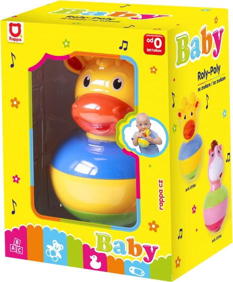 A bájos, felboríthatatlan zsiráf a lekerekített talpnak köszönhetően folyamatosan ringatózik, belsejében pedig finoman csilingel egy csengő. Remek játék a legkisebbeknek a motoros készségek és az érzékelés fejlesztéséhez. A színek eltérhetnek.