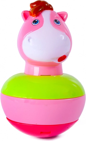A csengős keljfeljancsi lovacska aranyos billegő játék a legkisebbeknek, lekerekített talppal. Megpöccintve mindig visszaáll, a belsejében lévő csengő pedig fejleszti a hallást és ébreszti a kíváncsiságot. Támogatja a finommotorikát, és hosszan lefoglal.
