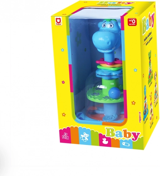 Színes, dinoszaurusz alakú játék, amelynek a fejét megnyomva a színes golyók megmozdulnak – forognak, pattognak és csörgő hangot adnak. Remek szórakozás a legkisebbeknek.