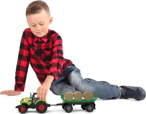 A Moje malá farma kollekció modern műanyag traktora pótkocsival és szalmakötegekkel