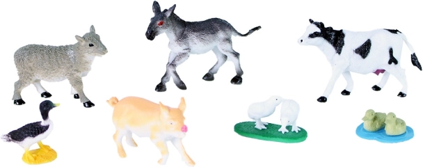 - 7 élethű figura háziállatokból, változatos játékszcenáriókhoz.