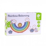 Ez a színes, hét ívből álló fa szivárvány billegő alapként működik, amelyre a gyerekek felhőket és napocskát pakolnak. A játék fejleszti a türelmet, az egyensúlyt és a logikus gondolkodást, miközben végtelen variációt kínál az építésre. A sima éleknek és a tartós fának köszönhetően ideális a mindennapi játékhoz.