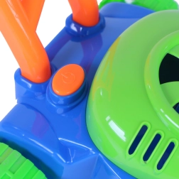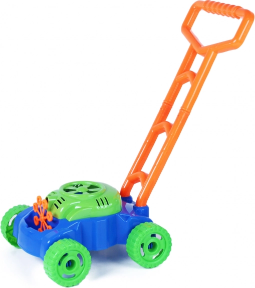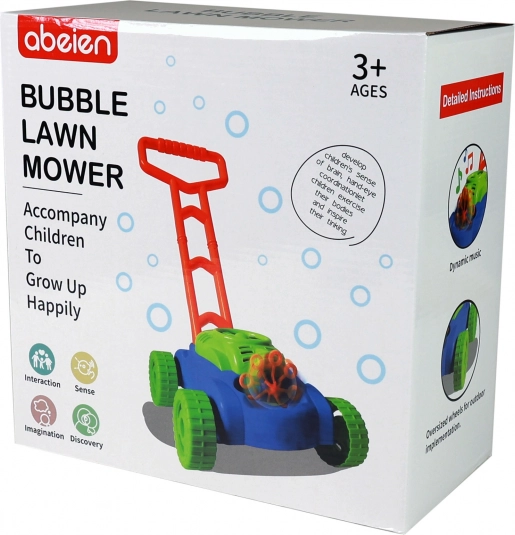 A gyerek buborékfűnyíró úgy lett tervezve, hogy a gyerekek szórakozást és mozgást tapasztaljanak a kertben való játék közben. Elég, ha buborékfúvót önt a speciális helyre, és a fűnyírót mozgásba helyezi - milliónyi apró buborék repül szét minden irányba. A még nagyobb élmény érdekében a fűnyíró hangokat és zenét játszik, ha három AA elemmel táplálja (nem tartozék), vagy elem nélkül mechanikus hanggal is használható.