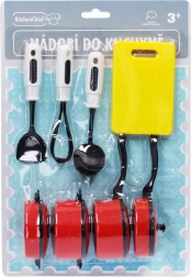 Ideális játék kis szakácslányoknak és szakácsoknak! Ez a minőségi műanyagból készült gyermek konyhai készlet tartalmaz két serpenyőt, két fazekat, egy tányért és két darab konyhai eszközt. A tartós anyagnak és a színes kivitelnek köszönhetően remekül kiegészíti bármelyik gyerekkonyhát, és támogatja a kreatív játékot és a motorikus készségek fejlődését.
