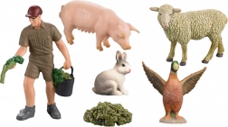 Fantáziával teli farmás játék: a készlet tartalmaz gazdát, malackát, báránykát, kacsát és nyulat kiegészítőkkel. A figurák jó minőségű, kemény gumiból készültek, élethű részletekkel, és ideálisak a kreatív farmjátékhoz.