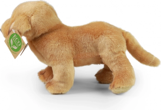 A 20 cm magas, álló labrador élethű megjelenésű, és könnyen elfér a hátizsákban vagy kiságyban.