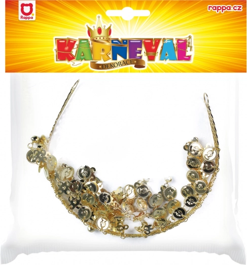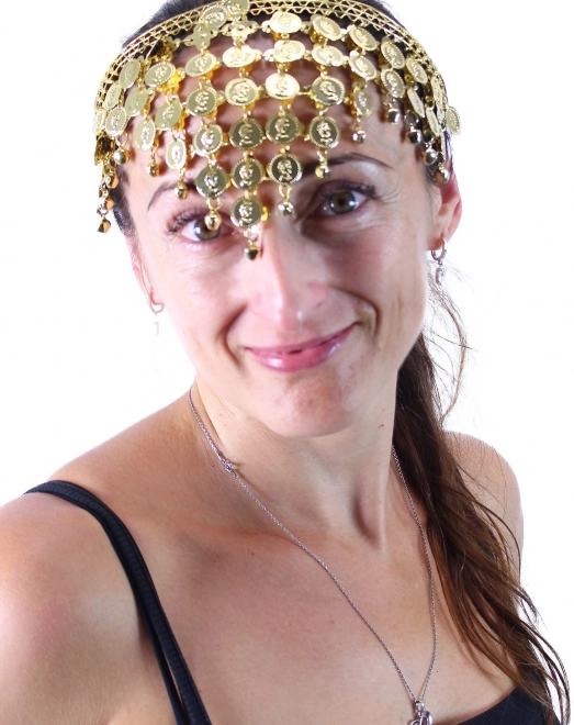 Elegáns fejpánt fényes arany pénzecskékkel, amely remekül kiegészíti egy hastáncosnő vagy orientális lány jelmezét. Autentikus stílust ad az öltözéknek, mozgás közben szépen csilingel, és kiemeli bájad minden farsangon vagy bulin.