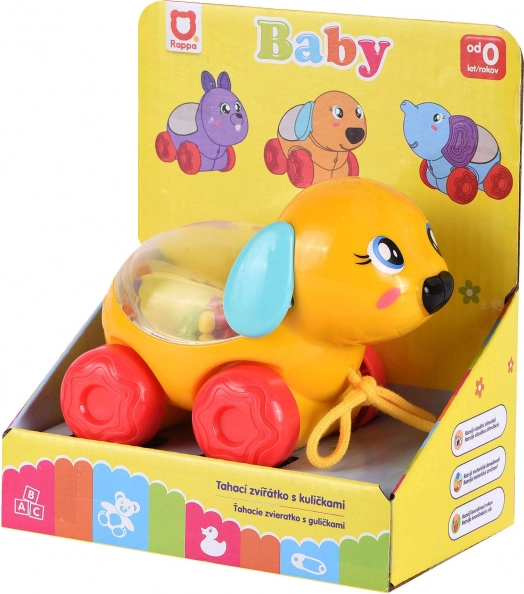 A cuki, húzogatós kiskutya kerekeken rengeteg szórakozást és mozgást nyújt a gyerekeknek. Húzáskor vagy mozgás közben az átlátszó dobban fel-le pattognak a színes golyók, amelyek ösztönzik a látásészlelést és a mozgáskoordinációt. Ideális játék az első lépésekhez és az aktív játékhoz.