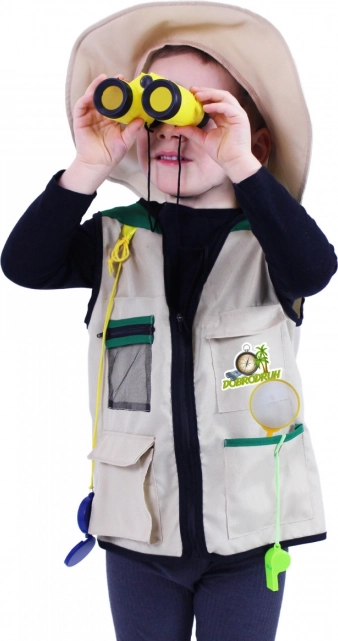 Teljes jelmez mellénnyel, kalappal és kiegészítőcsomaggal. A gyerekeknek minden kéznél van a kalandokhoz és a fantáziadús játékhoz.